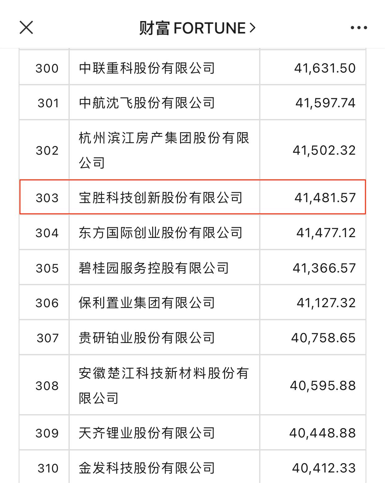 近日,2023年《財(cái)富》中國(guó)上市公司500強(qiáng)排行榜正式發(fā)布,寶勝股份位列第303位。
