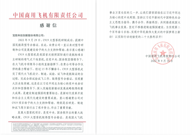 站在新的歷史節點,寶勝正以“航空報國”的使命擔當,向著一流航空線纜系統頂級供應商的目標全速邁進。