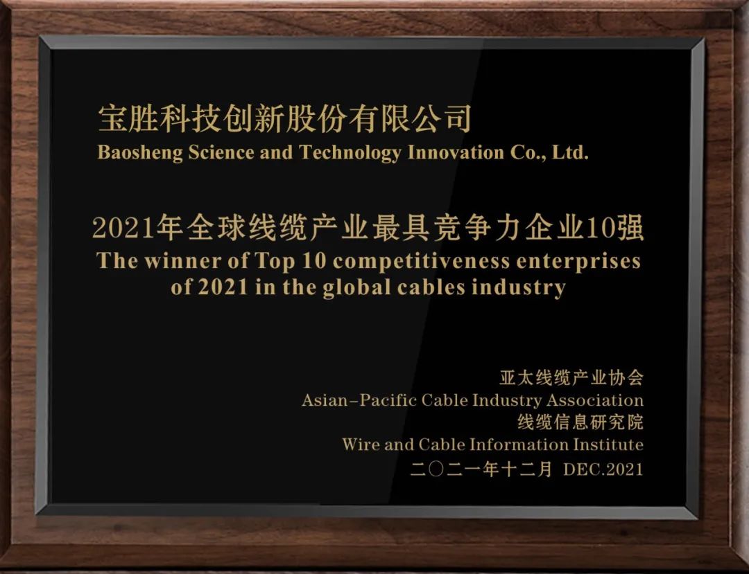憑借卓越的科創實力,寶勝品牌影響力持續擴大,先后服務了APEC峰會、G20杭州峰會、北京大興機場、北京冬奧會等重大工程和重大項目,企業陸續榮獲首屆中國線纜行業最具競爭力企業10強、首屆全球線纜產業最具競爭力企業10強、《財富》中國500強、亞洲品牌500強、江蘇省自主工業品牌50強等榮譽,充分彰顯了寶勝品牌的行業地位和硬核實力。